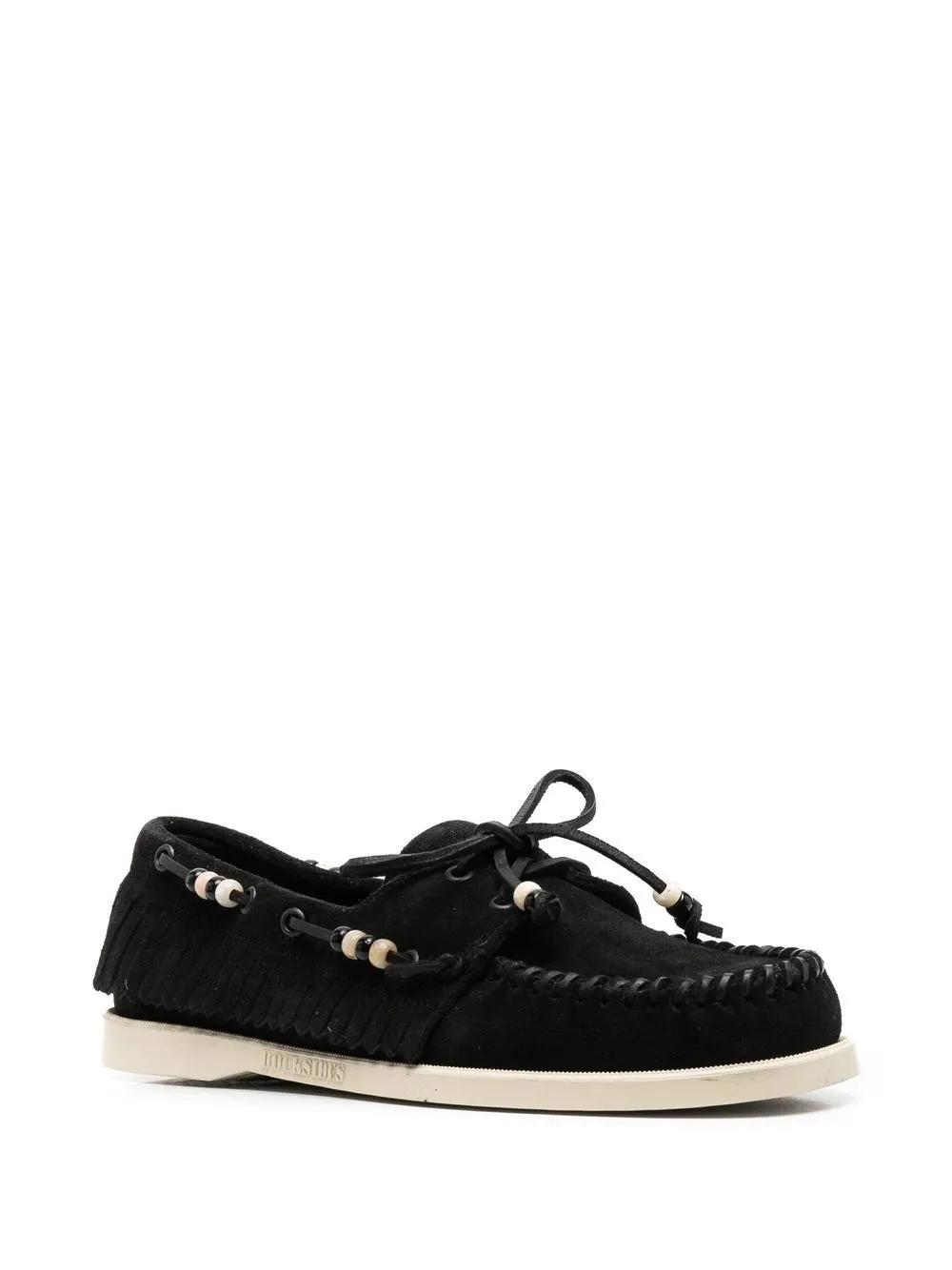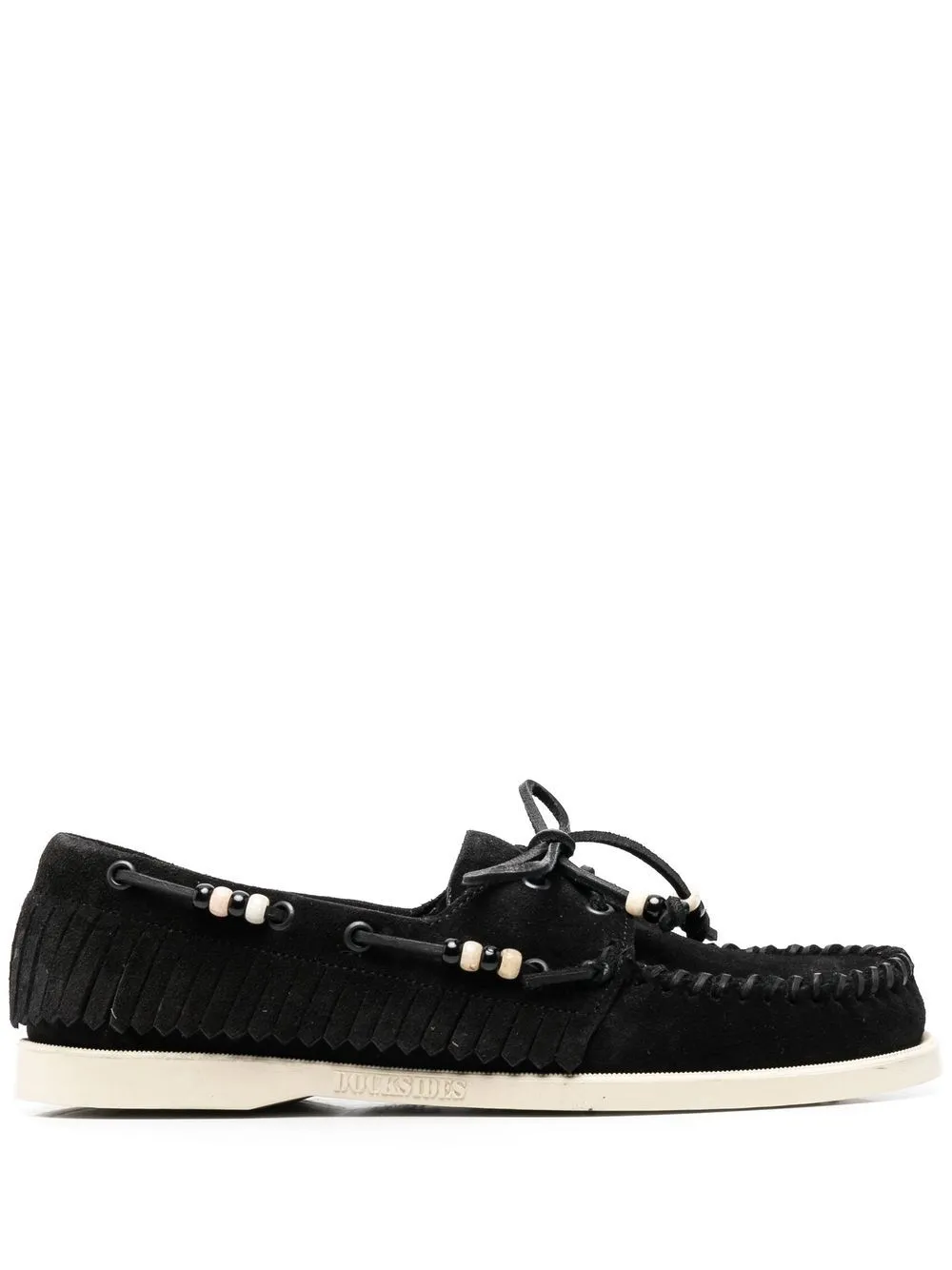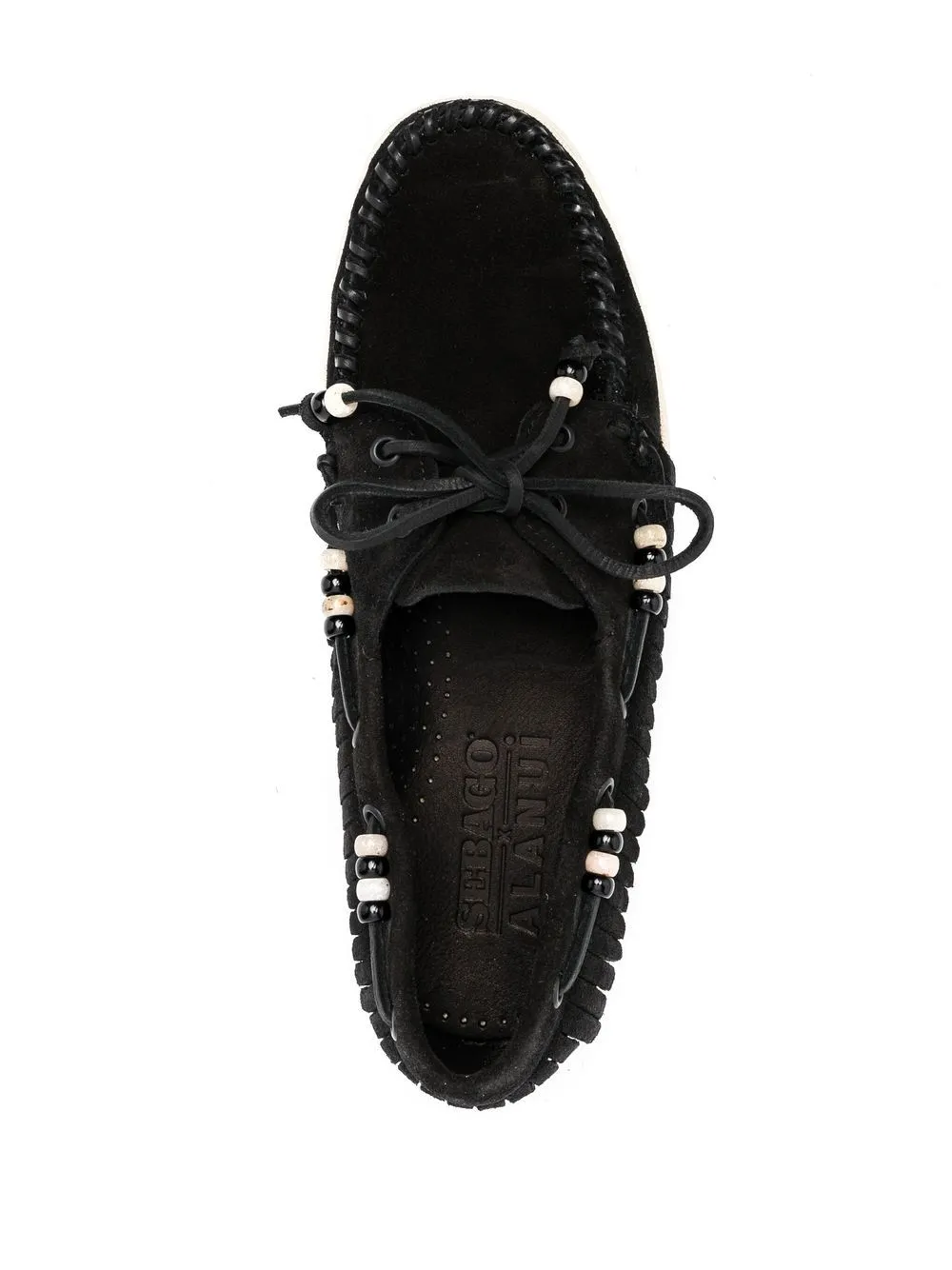 Alanui joins footwear label Sebago to create a capsule collection for SS22. Crafted from leather in a versatile beige colour, the Dockside loafers are embellished with contrasting beads at the side whilst sporting recognizable fringed accents at the heel counter.