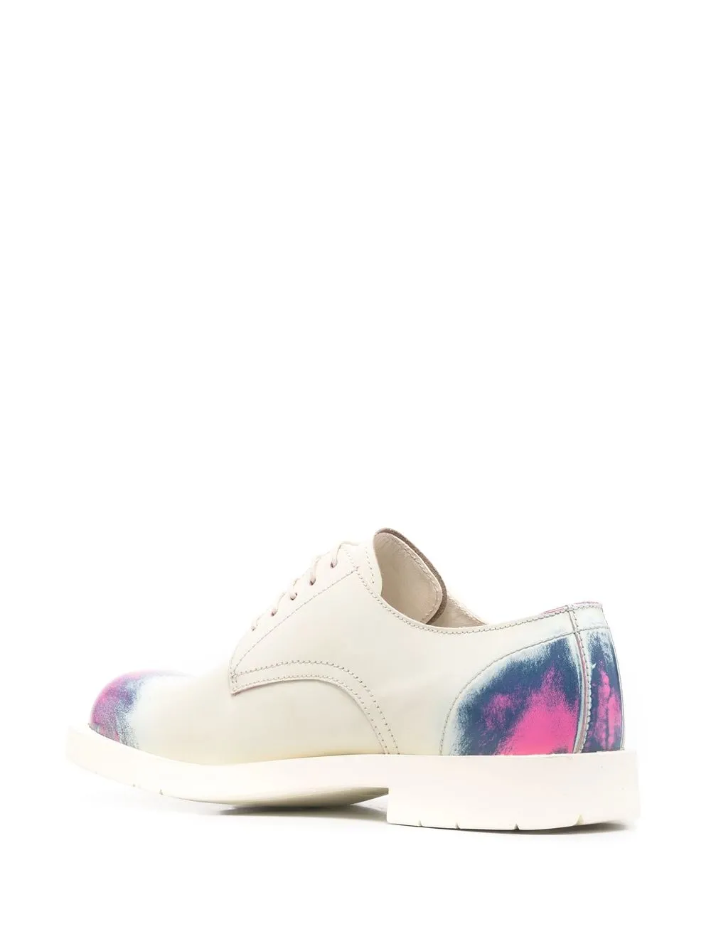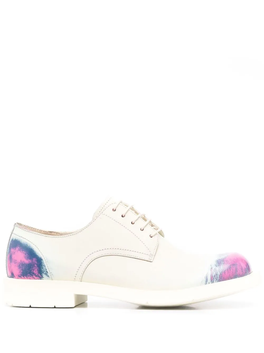 1978 derby shoes from CamperLab featuring white/multicolour, leather, contrasting toecap, front lace-up fastening and round toe. Conscious: This item is crafted with leather that has been produced in a certified Leather Working Group (LWG) or ICEC tannery, ensuring the production process has a reduced environmental impact..