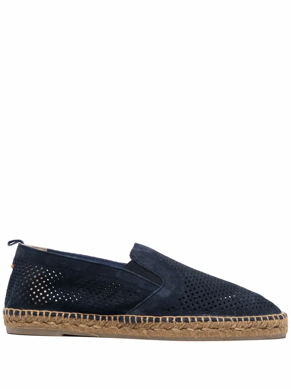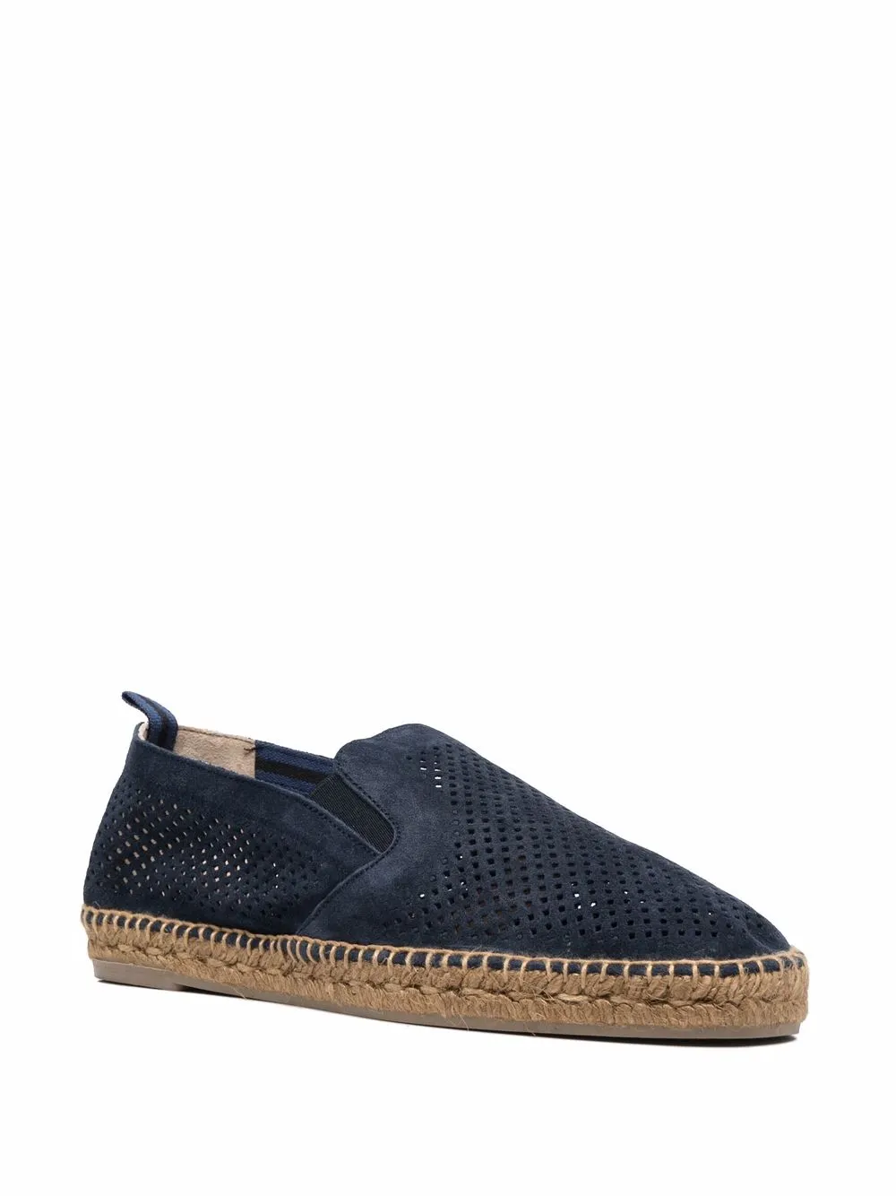 Navy leather Joel pierced suede-leather espadrilles from Castañer featuring fully perforated, pull-tab at the heel, elasticated side panels and braided raffia sole.