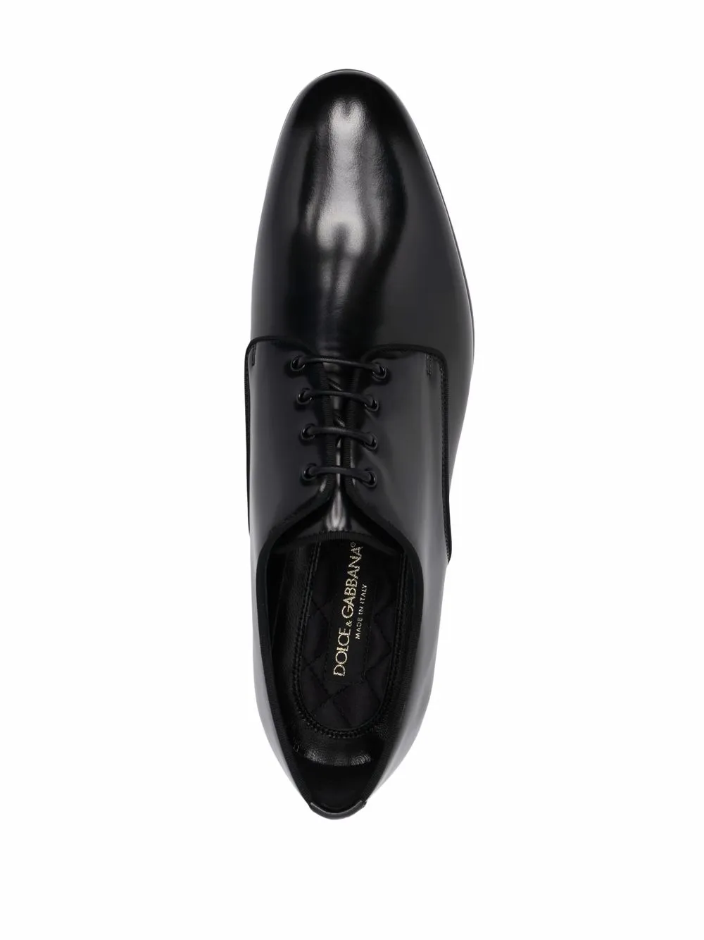 Dolce & Gabbana brings sleek design to the forefront of this pair of classic black lace-up derby shoes constructed from polished black leather in Italy.