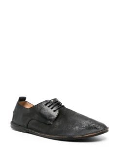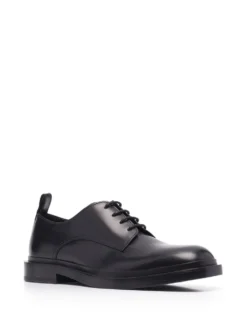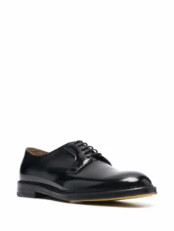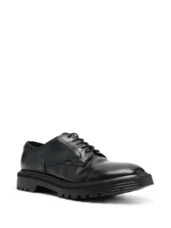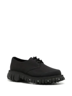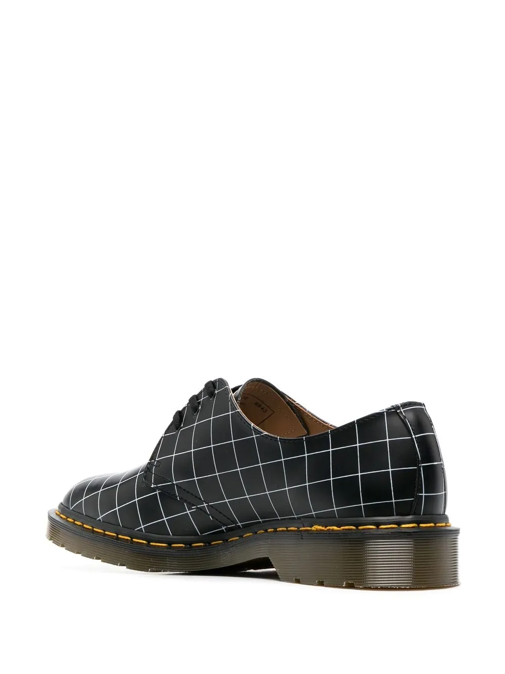 x Undercover 1461 leather Derby shoes from DR. MARTENS featuring black/grey, calf leather, check pattern, round toe, front lace-up fastening, branded insole, contrast stitching and flat rubber sole.