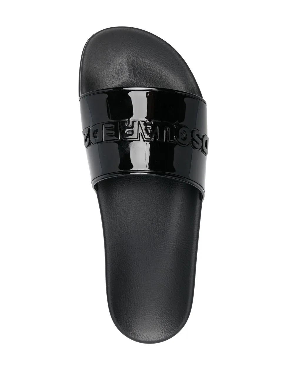 embossed-logo open-toe slides from DSQUARED2 featuring black, embossed logo to the front, slip-on style, open toe and rubber sole.
