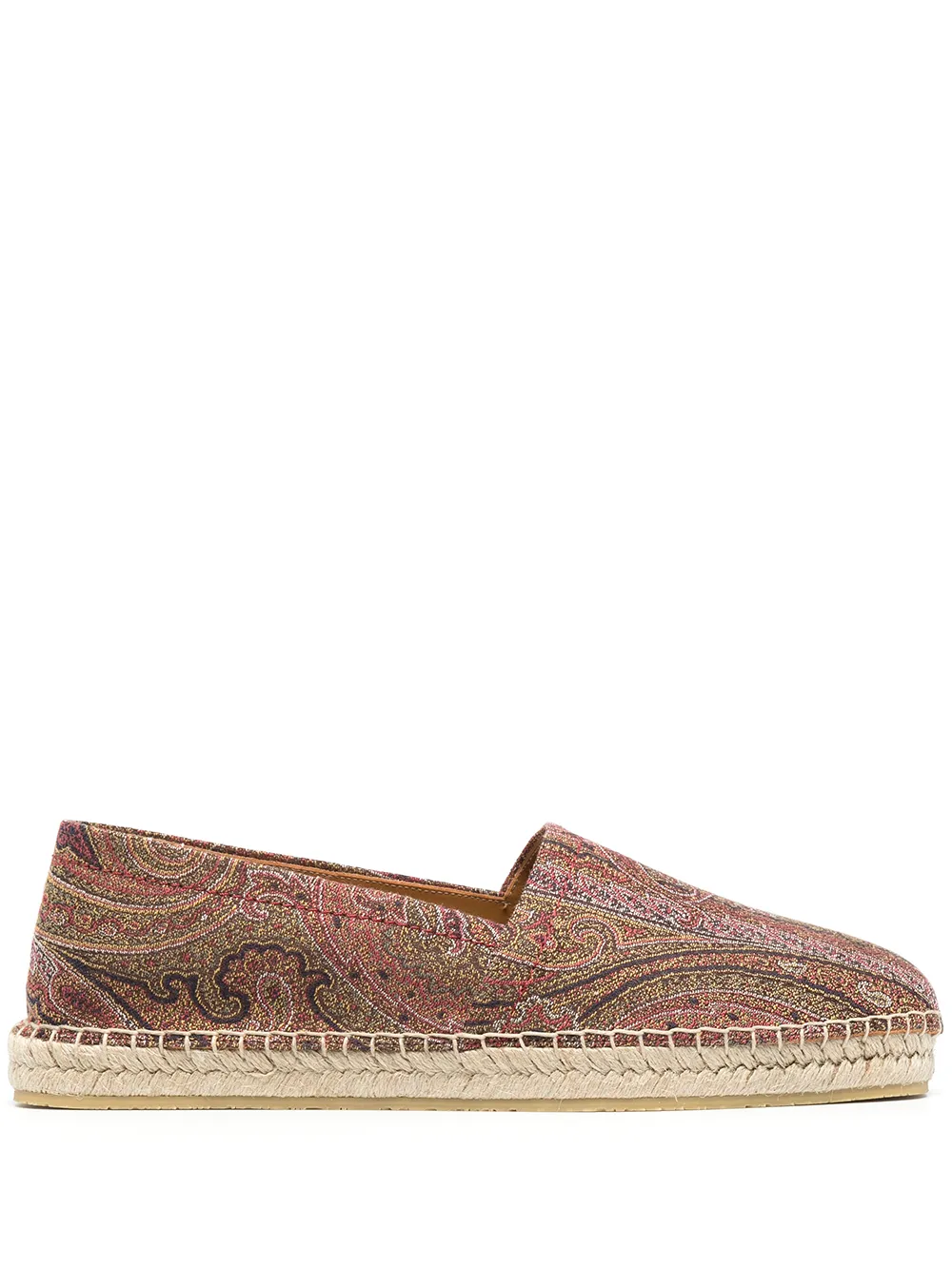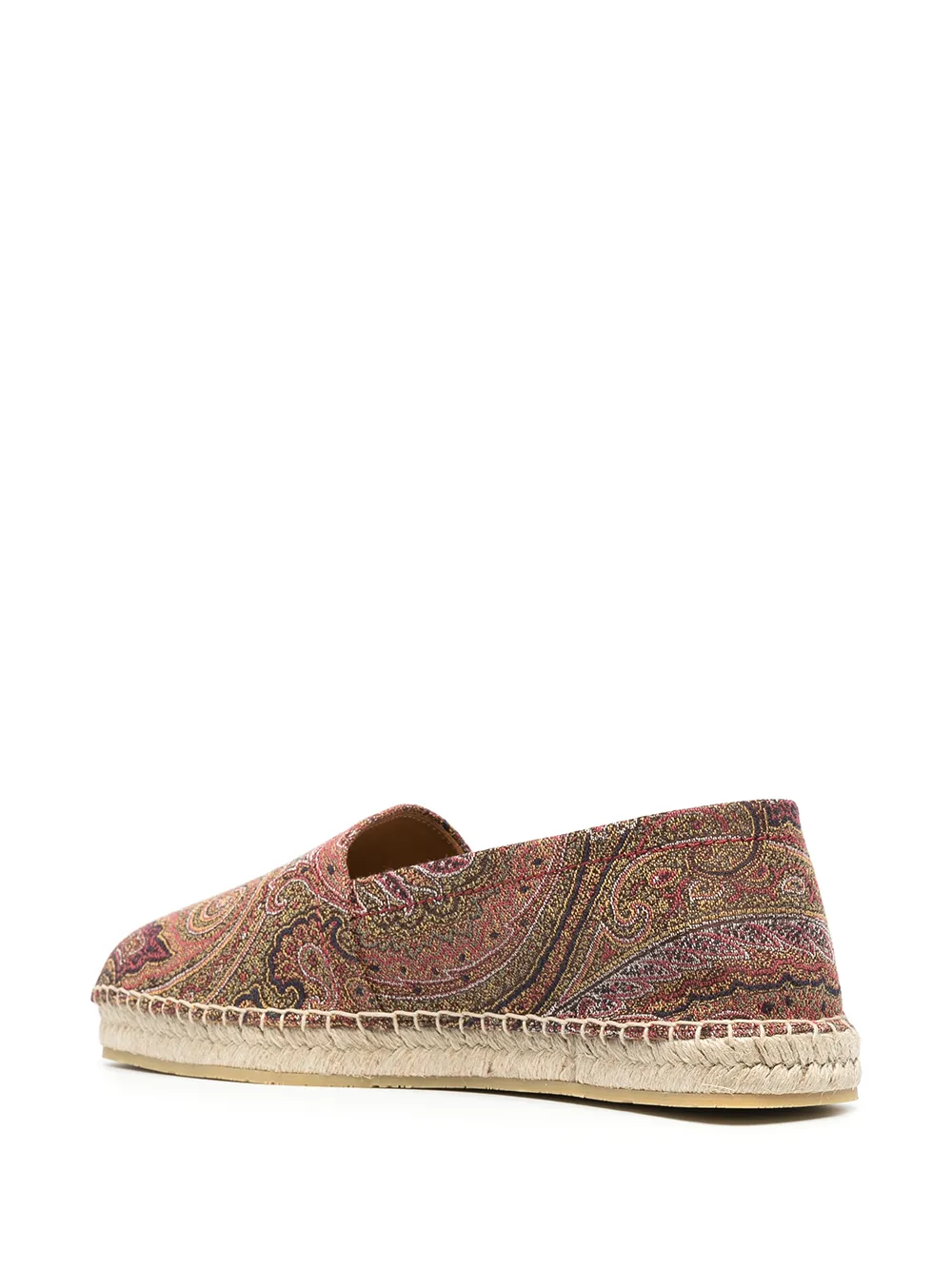 Multicolour cotton/calf leather paisley print espadrilles from ETRO featuring paisley print, round toe, branded insole and jute sole.