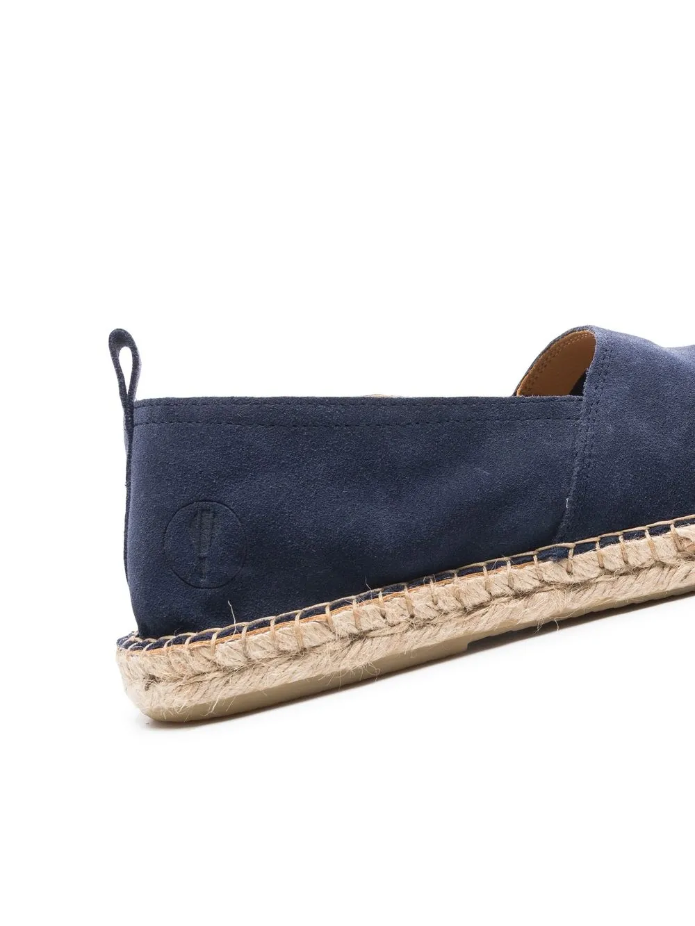 Helio suede espadrilles from FRESCOBOL CARIOCA featuring navy blue, suede, braided raffia sole, round toe and slip-on style.
