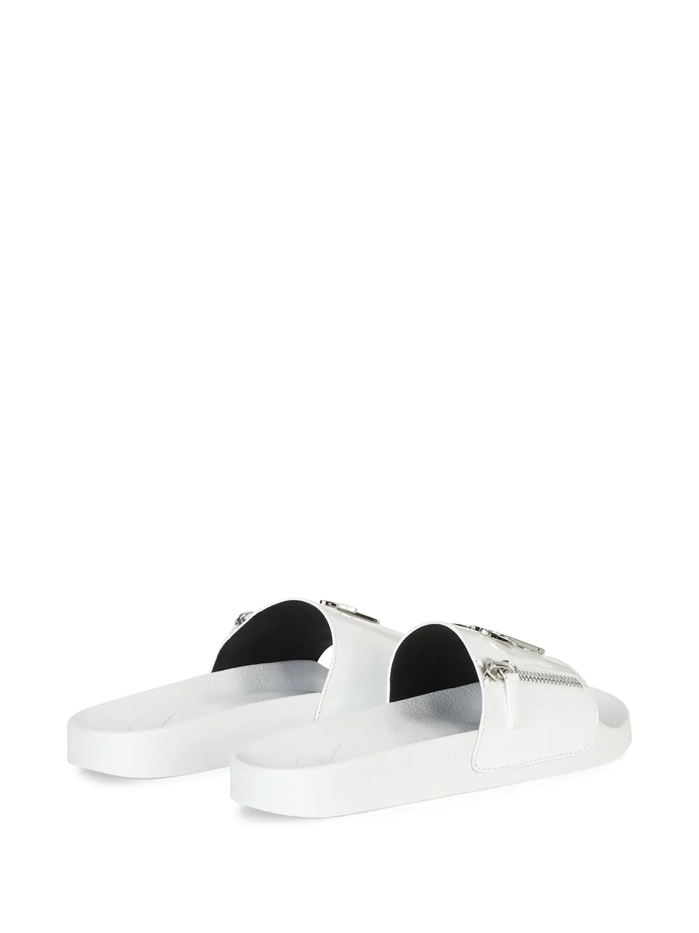 Giuseppe Zanotti is an Italian footwear and fashion designer, master in combining different details to create new and sleek designs. A fine example, are these Brett slides, designed with a decorative zip on the band and finished with a comfortable rubber sole.
