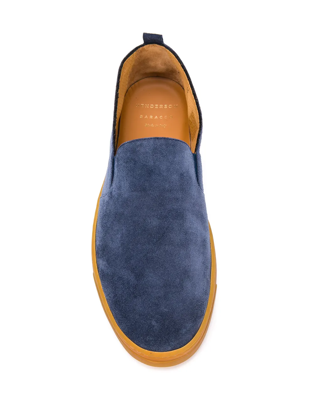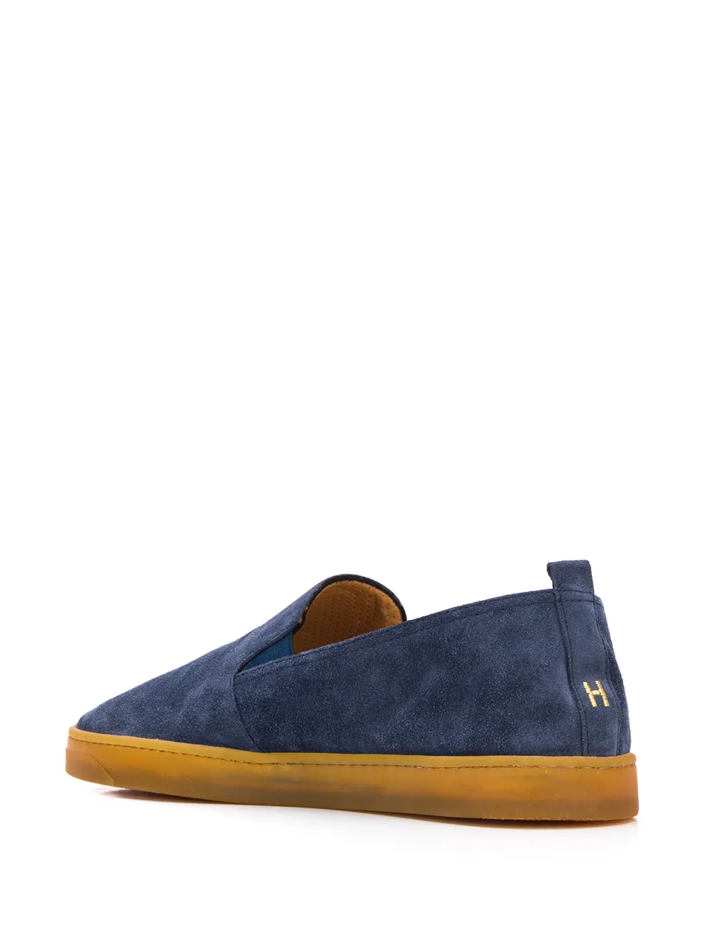 Blue calf suede Rodi round toe espadrilles from Henderson Baracco featuring elasticated side panels, a slip-on style, a branded insole, a pull tab at the rear and a flat rubber sole.