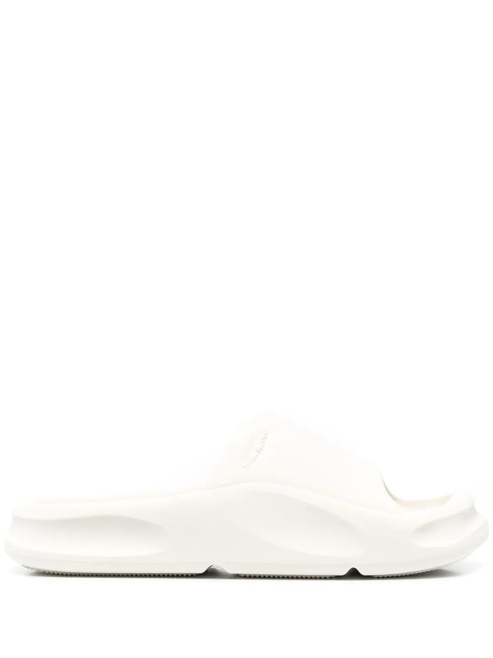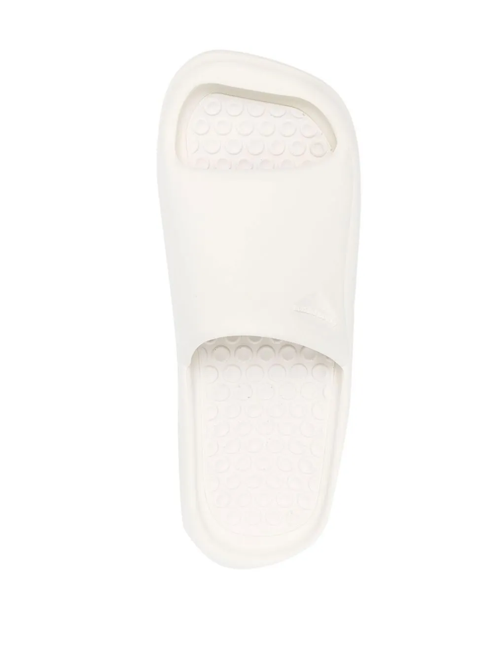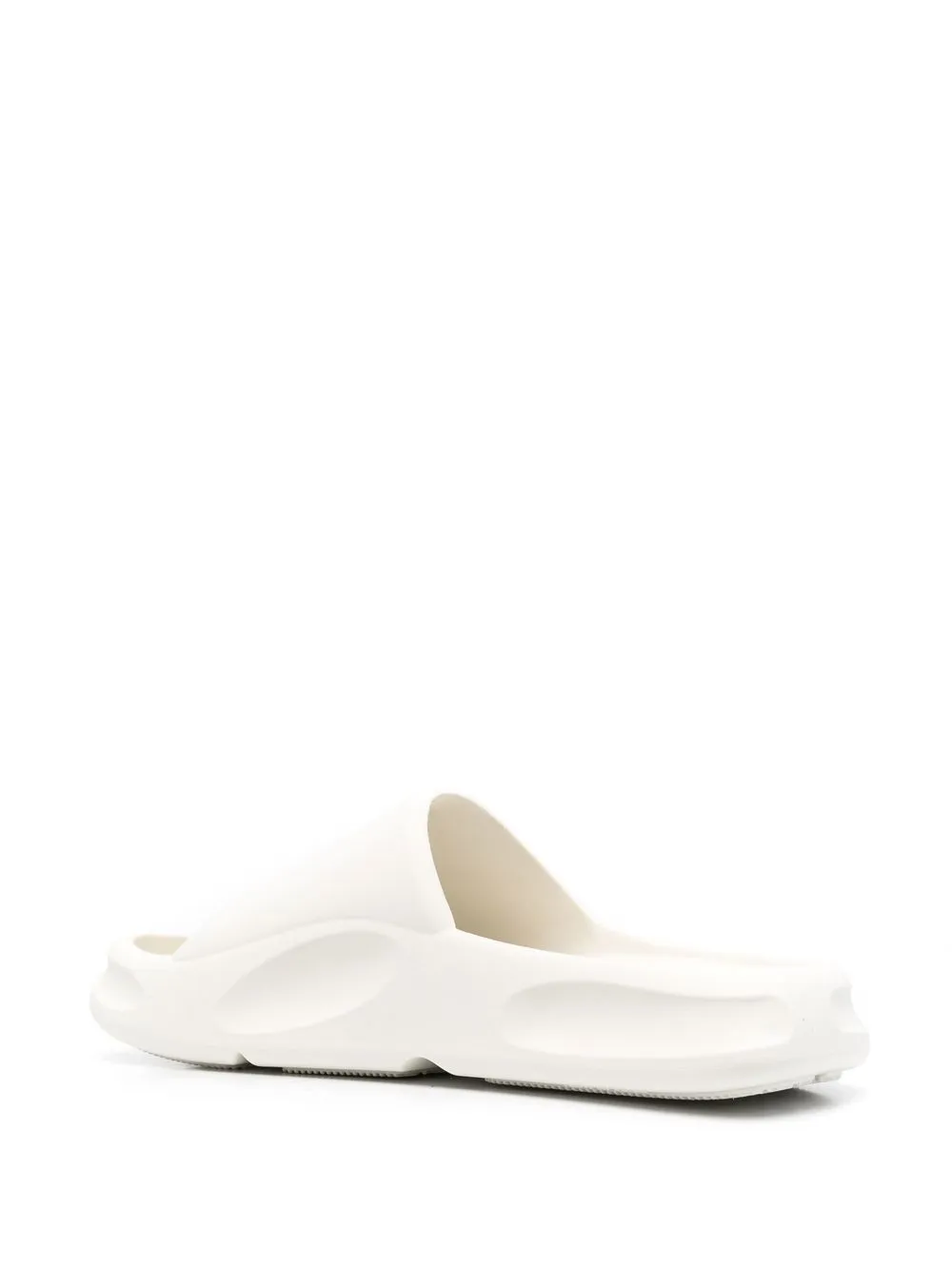 White rubber square-toe sliders from HERON PRESTON featuring square toe, open toe and flat rubber sole. Conscious: This item is made from at least 50% recycled or upcycled materials. For recycled synthetic clothing products we highly recommend using a microfibre-catching washing bag to ensure that no microplastics that can pollute water are released in the process..