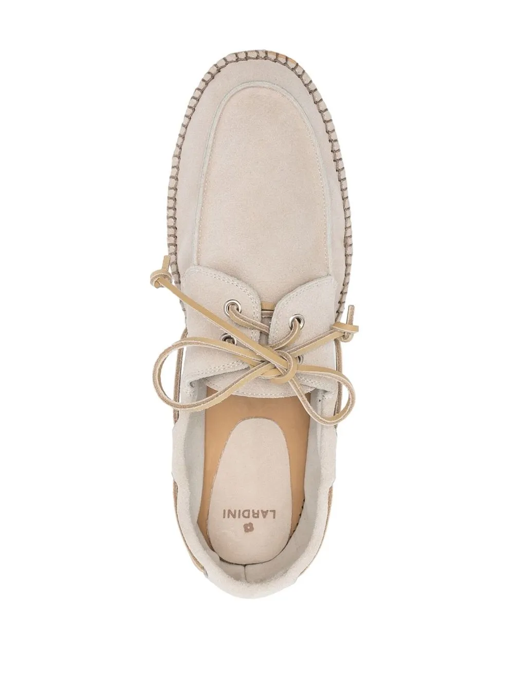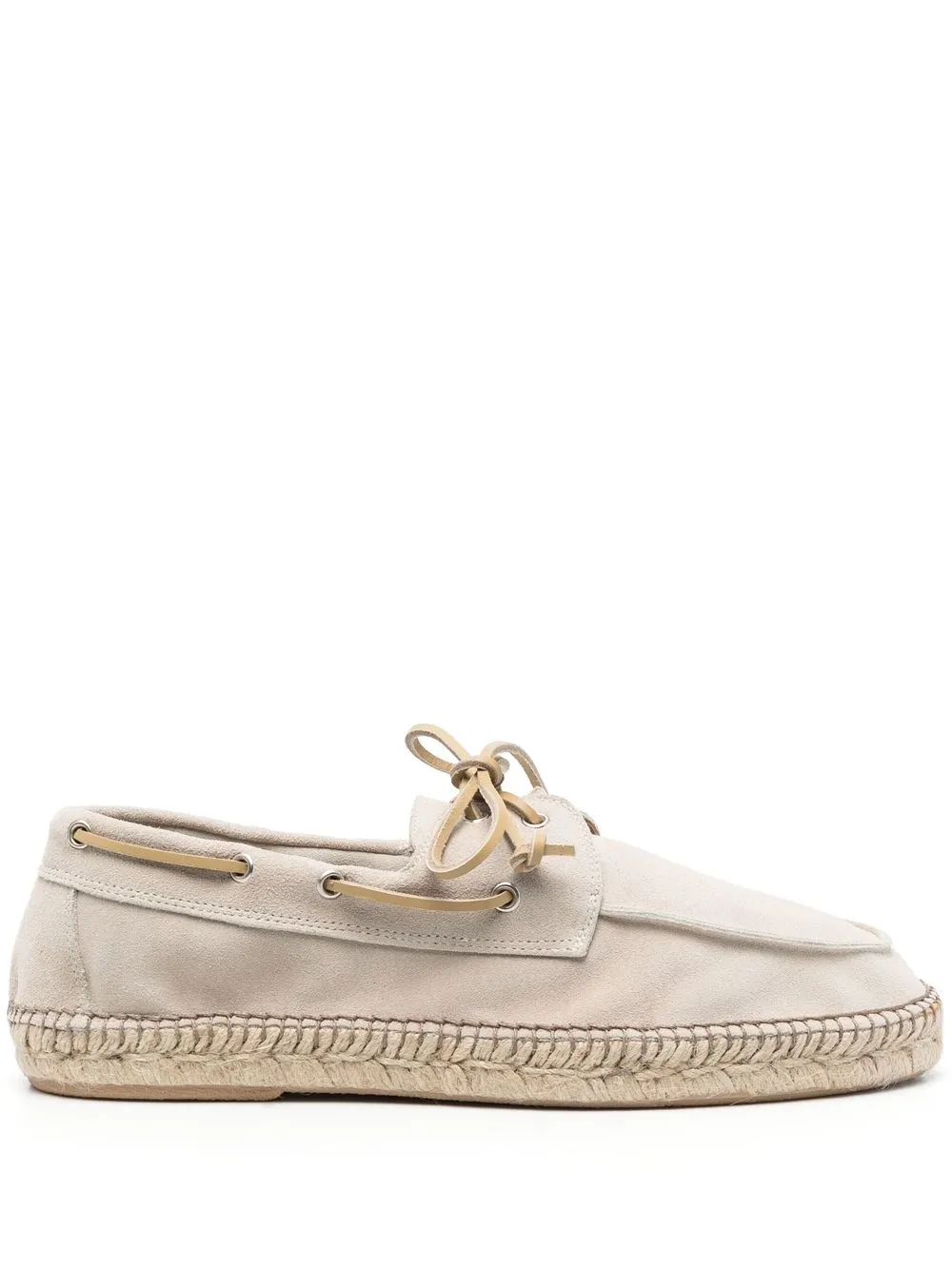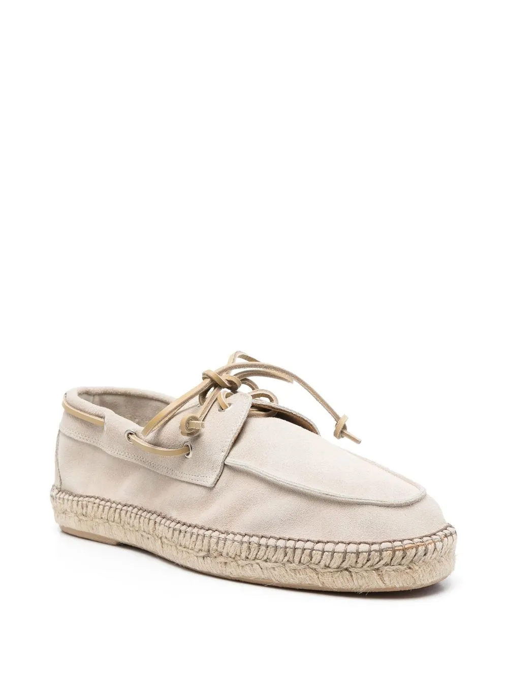 Combining effortless style with a contemporary touch, Lardini presents these espadrilles. In a beige hue, they feature silver-tone eyelets and suede lace-up fastenings.