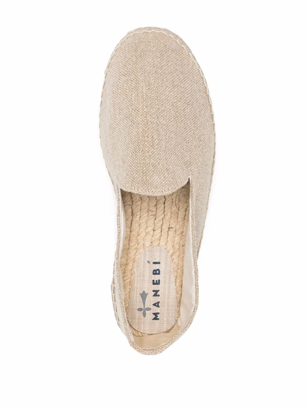 Beige La Havana espadrilles from MANEBI featuring slip-on style, round toe, branded insole and braided raffia sole.