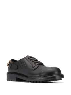 Marsèll for men fuses classic craftsmanship with a modern twist. Luxe leather is reworked into textured and distressed finishes whilst traditional silhouettes take on an off-beat aesthetic. Creative and experimental, expect the unexpected from this directional footwear and accessories brand. These Derby shoes are the perfect edgy wardrobe statement piece with their round toe, lace fastening and chunky low heel.