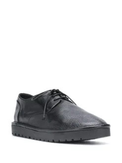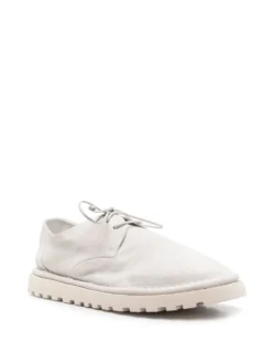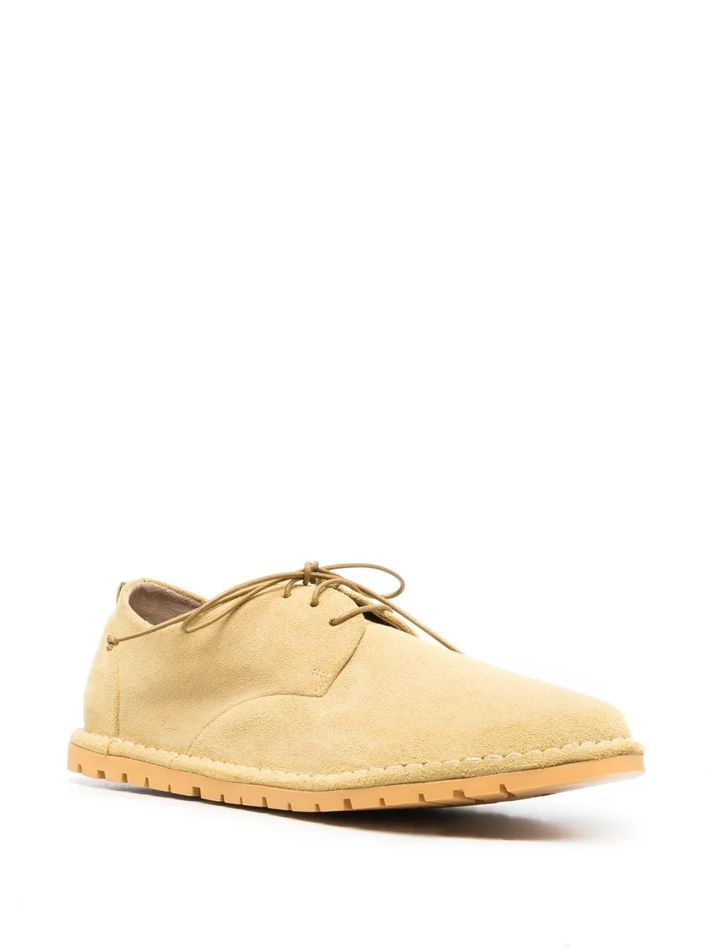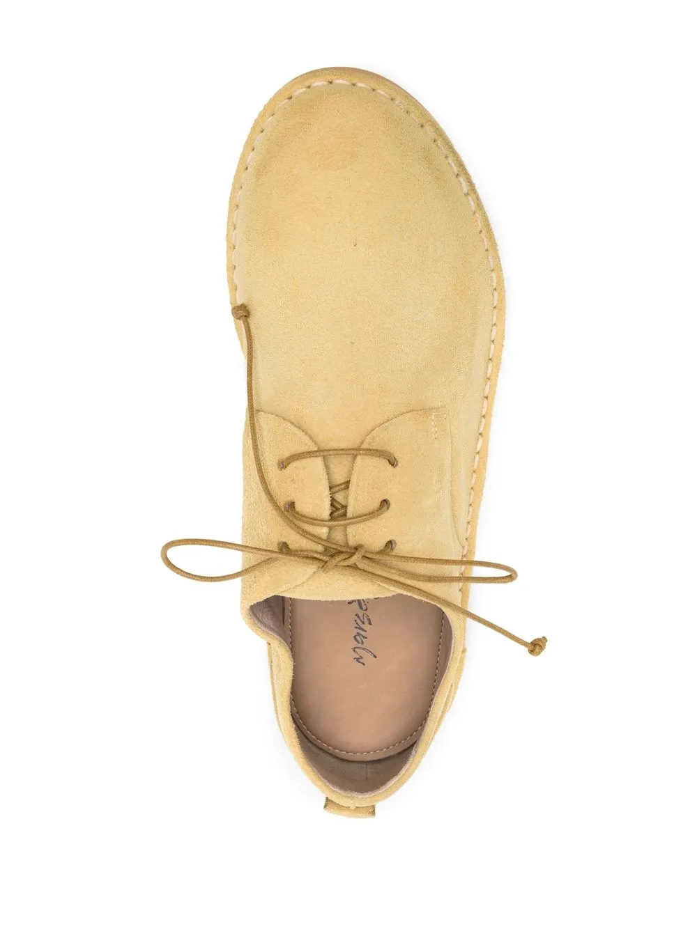 lace-up fastening derby shoes from MARSÈLL featuring front lace-up fastening, branded insole, flat rubber sole, pale yellow, calf leather, calf suede and round toe.