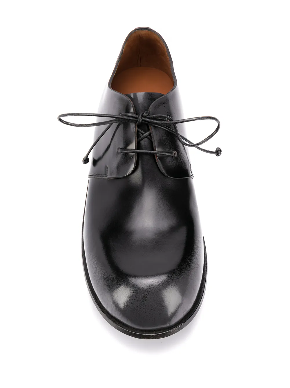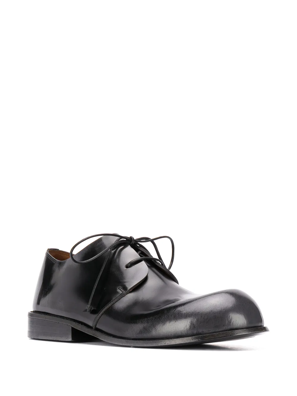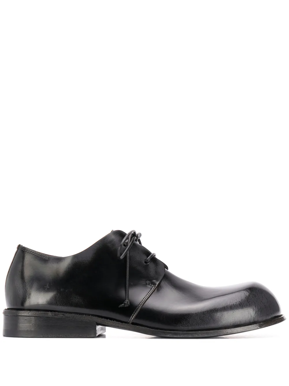 Crafted from leather in a black hue, these Muso Derby shoes from Marsèll are set atop a flat rubber sole and detailed with an exaggerated round toe.