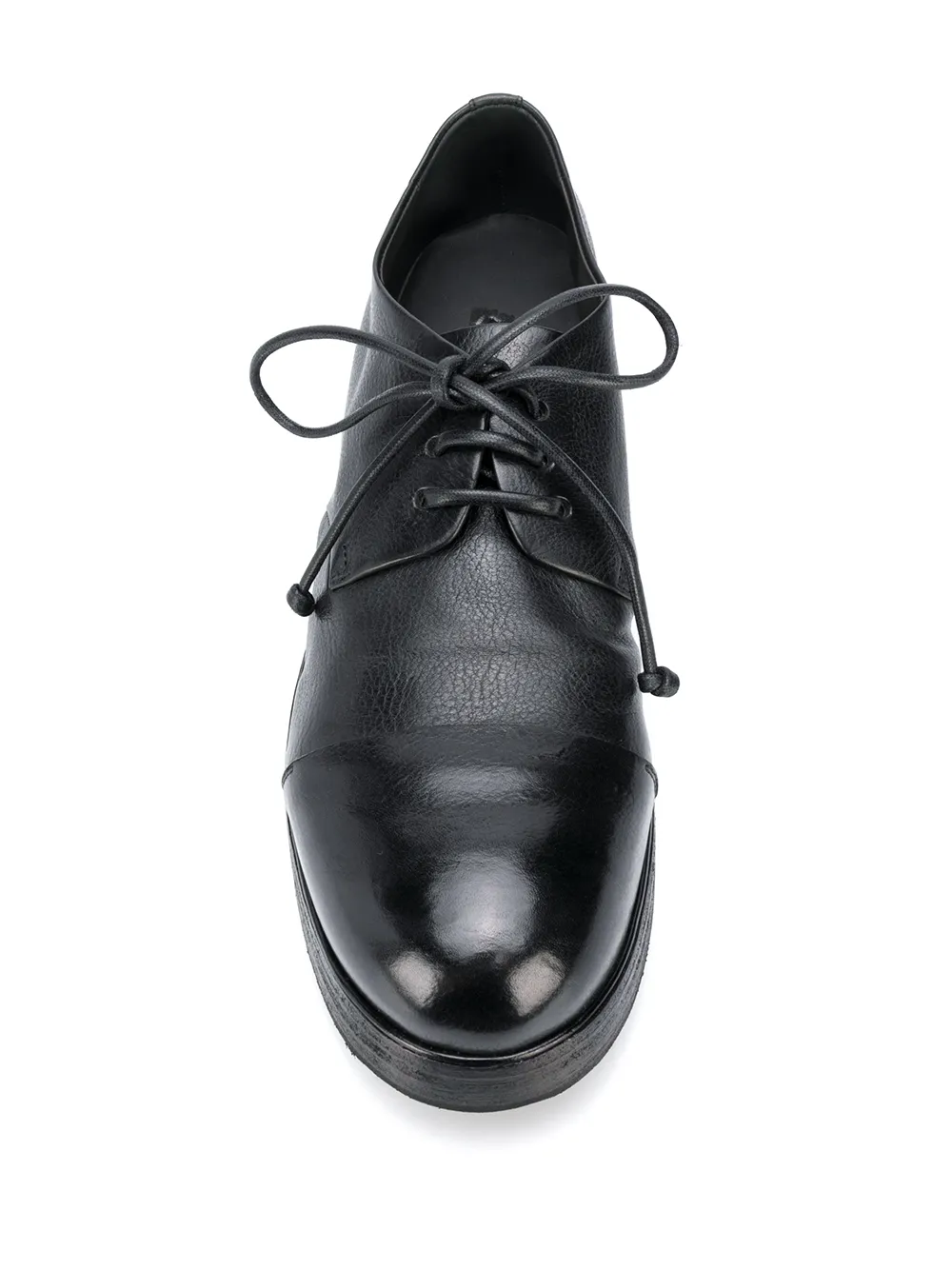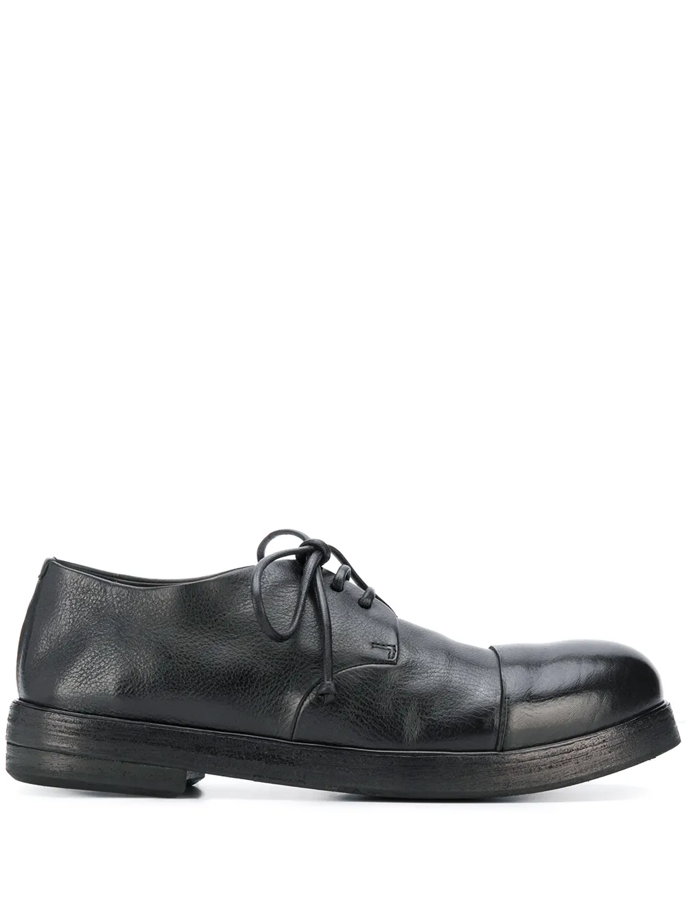 Marsèll for men fuses classic craftsmanship with a modern twist. Luxe leather is reworked into textured and distressed finishes whilst traditional silhouettes take on an off-beat aesthetic. Creative and experimental, expect the unexpected from this directional footwear and accessories brand. These black leather and rubber round toe derby shoes feature a lace-up front fastening, a branded insole and a flat sole.