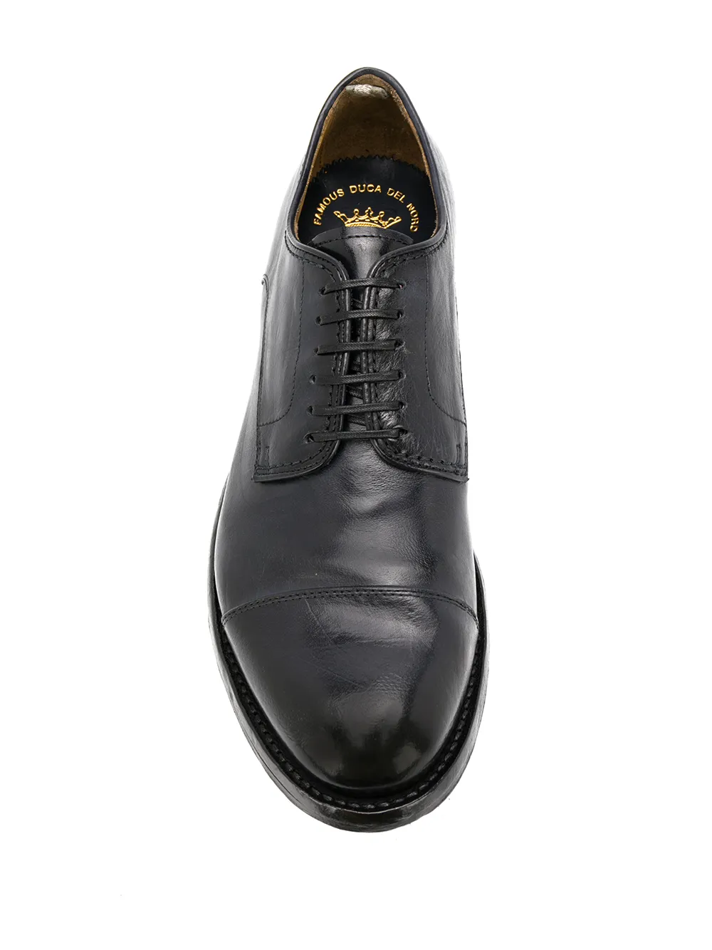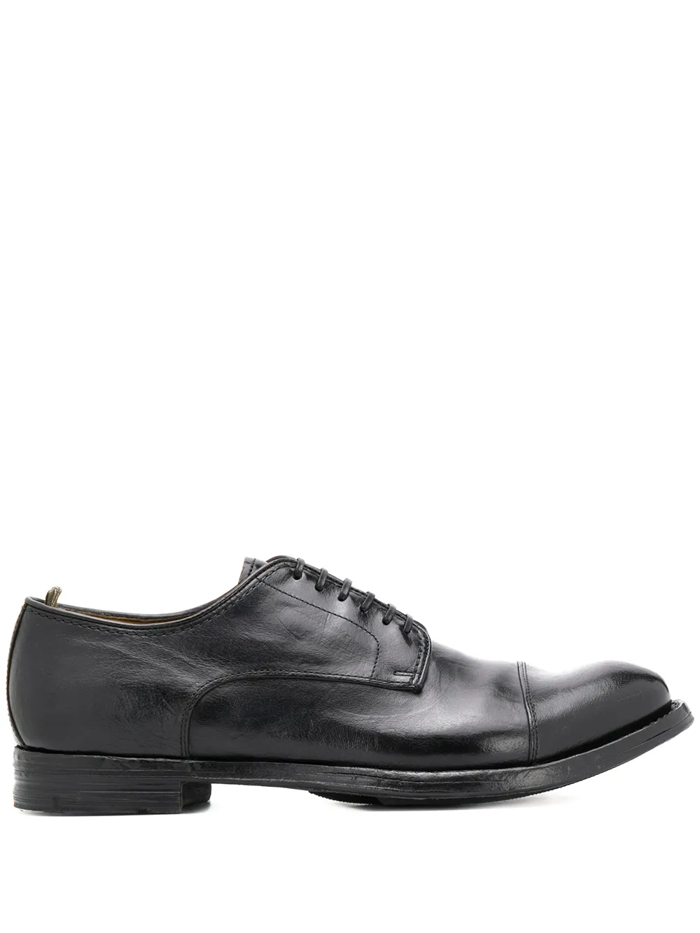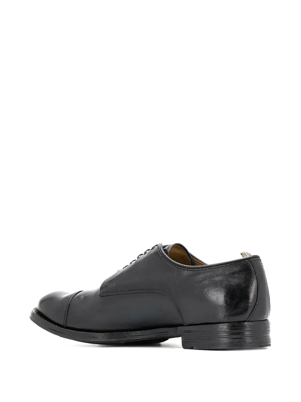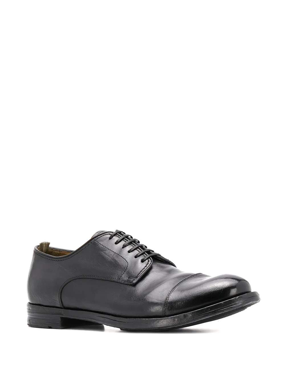 Dark-navy leather Anatomia 08 derby shoes from Officine Creative featuring a round toe, a stacked heel, a distressed finish, stitched panels, a lace fastening and a leather sole.