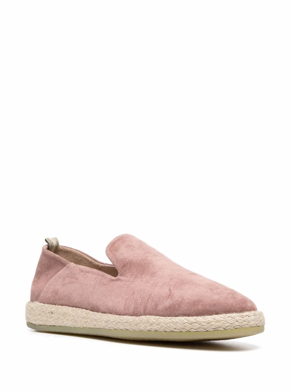 Pink calf suede/leather Rope 002 espadrilles from OFFICINE CREATIVE featuring braided raffia sole, slip-on style, round toe, flat rubber sole and branded insole.