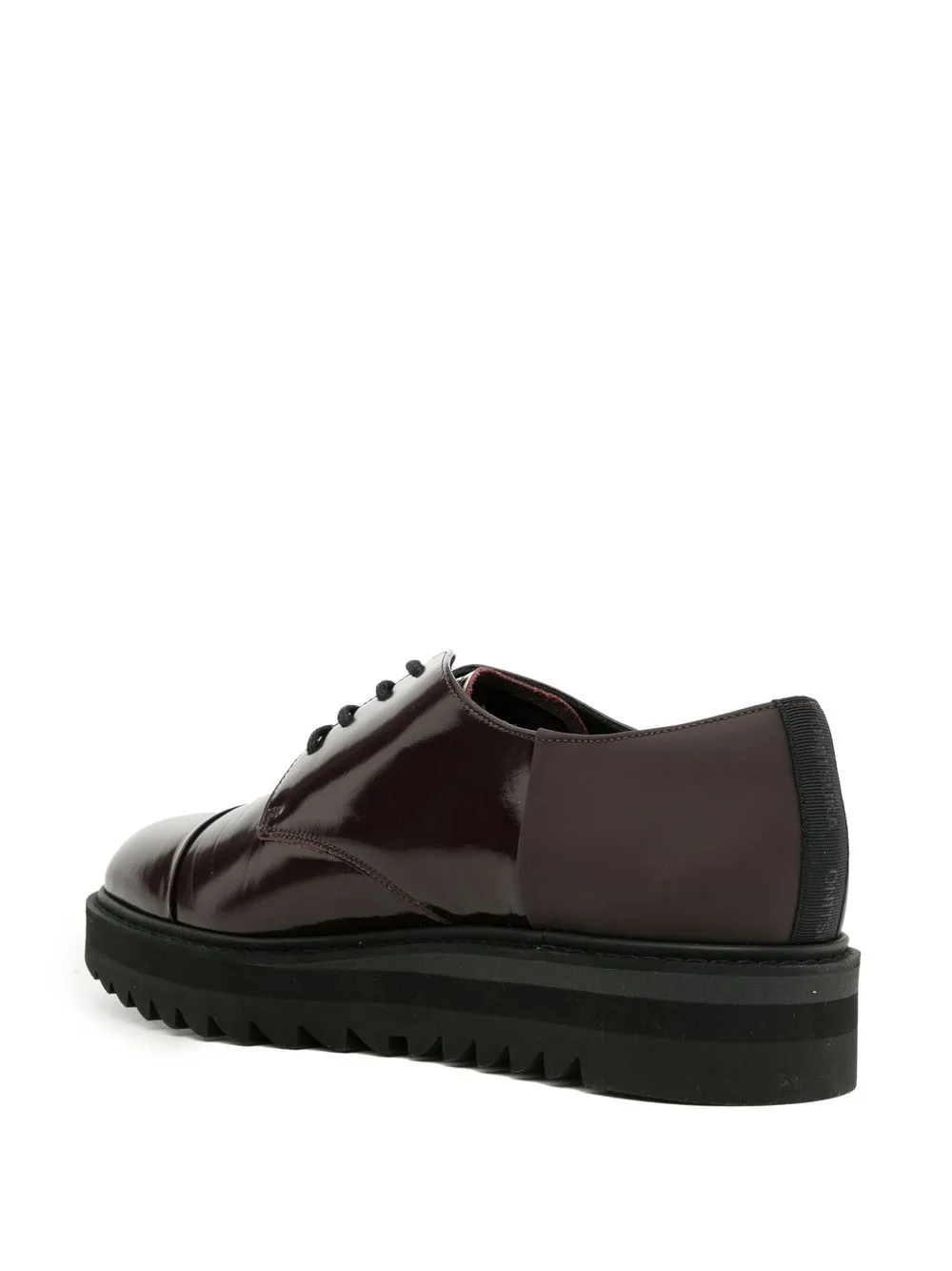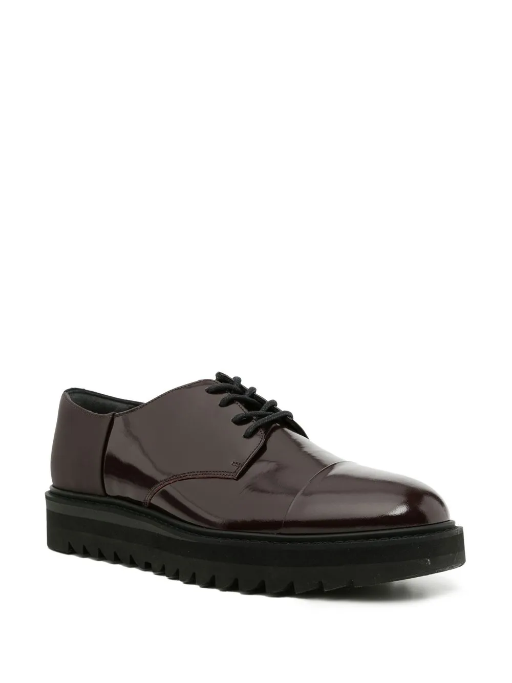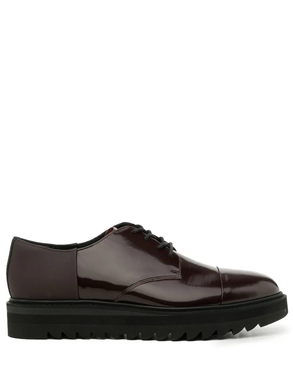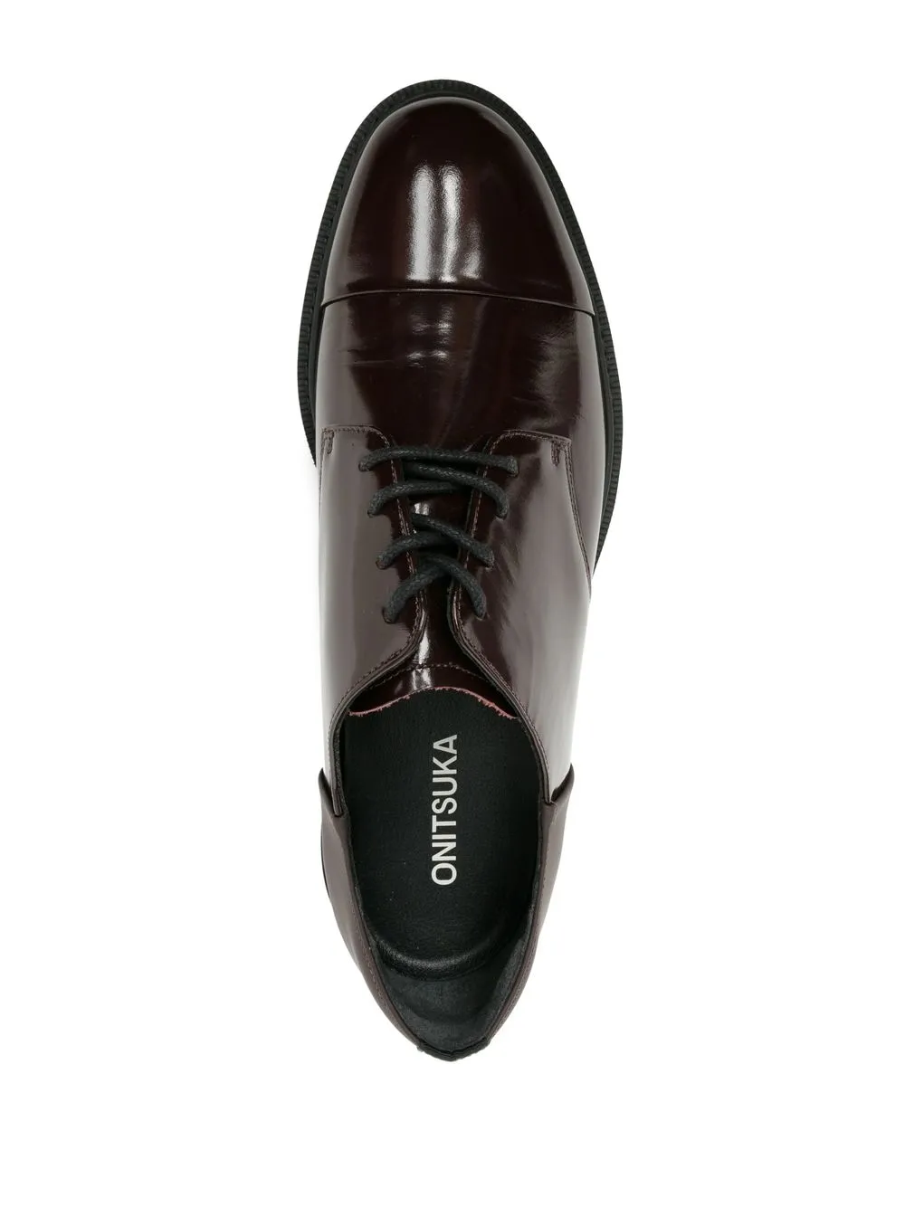 lace-up derby shoes from Onitsuka Tiger featuring high-shine finish, front lace-up fastening, round toe, flat rubber sole, branded insole, brown and leather.