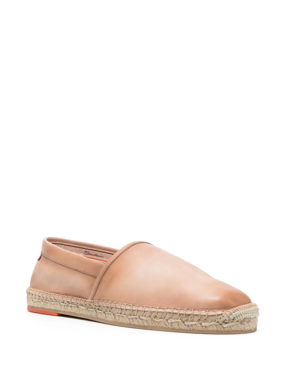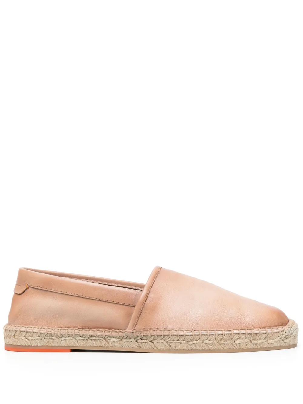Set atop a braided raffia sole, Santoni’s espadrilles are crafted from smooth leather in a blush beige hue. The round-toe pair is finished with a gradient effect.