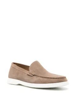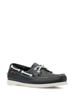 Brown Docksides Portland leather boat shoes from Sebago featuring a lace-up detail, a round toe, a slip-on style, a branded insole and a rubber sole.