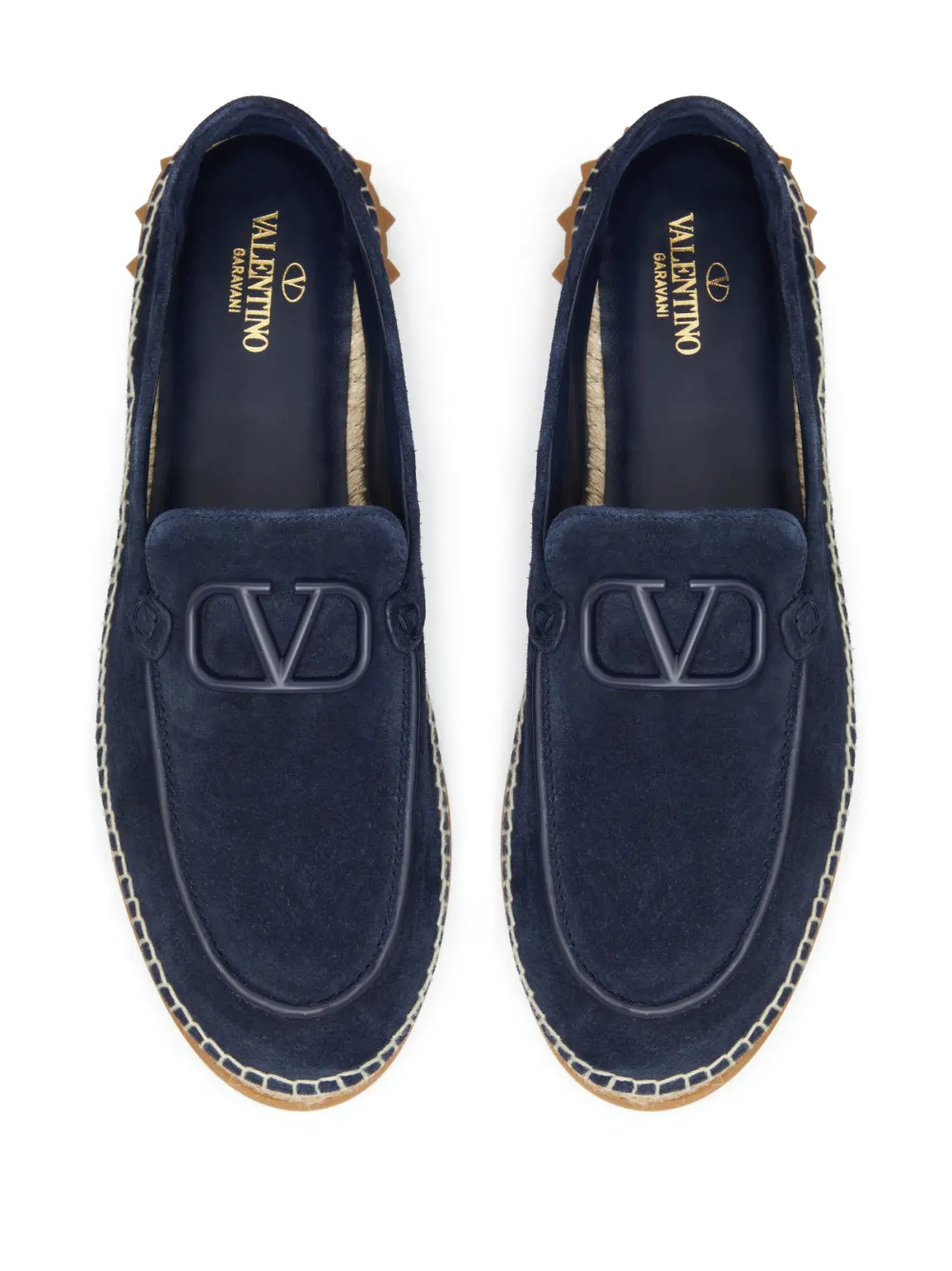 Valentino Garavani’s renowned VLogo Signature was first seen in 1968 and has become a true icon of the Italian fashion house since then. Decorating these navy-blue espadrilles, the motif is imagined in a tonal hue for a polished finish.
