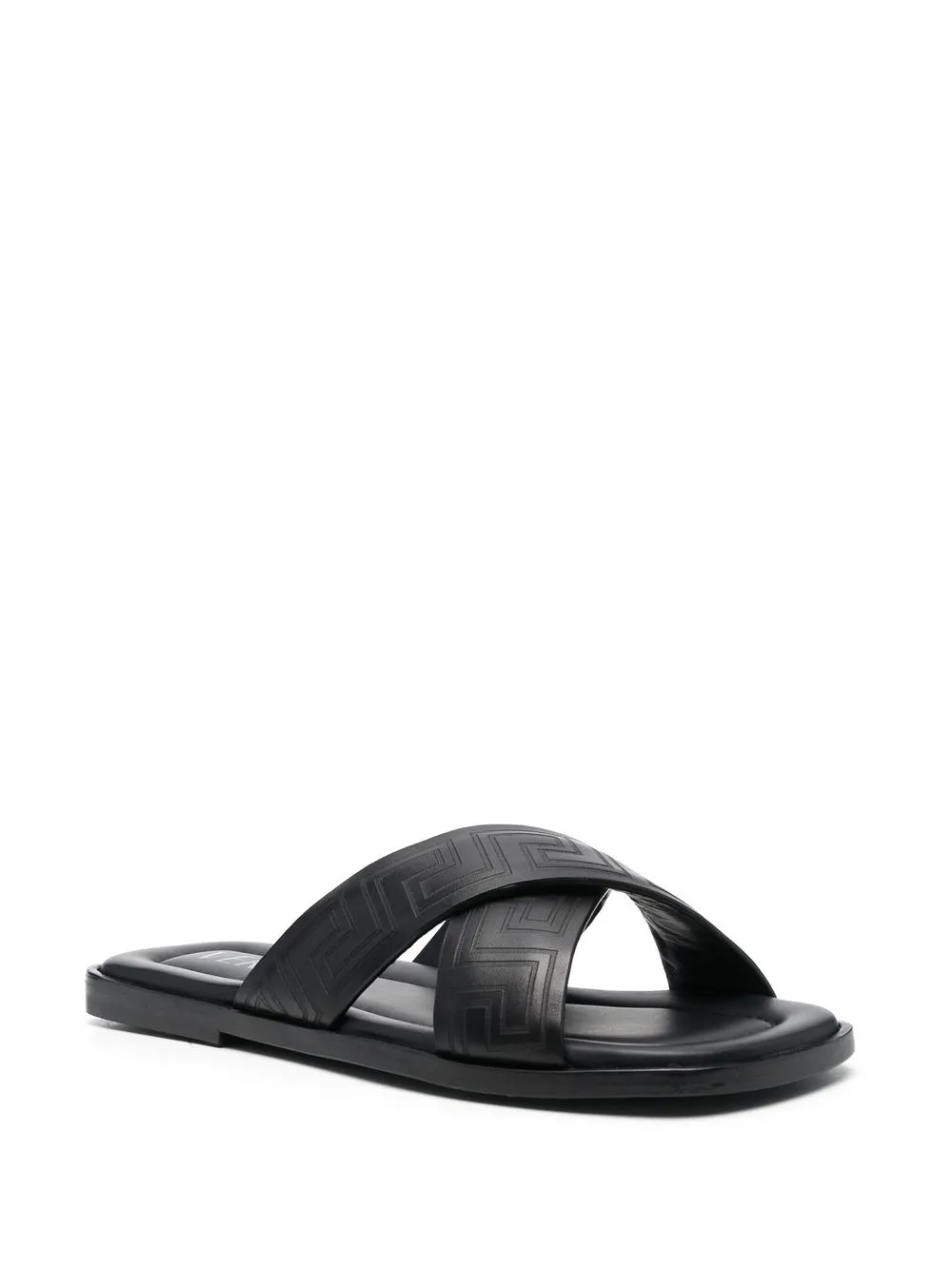 Greca-pattern open-toe slides